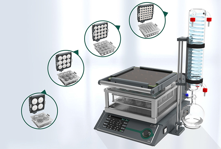 模塊化設(shè)計(jì)——兼容多種容積樣品瓶 APE 系列真空平行濃縮儀采用模塊化設(shè)計(jì),可以選配 850ml、 05450ml、250ml、60ml 樣品瓶適配器,滿足不同體積樣品濃縮需求。